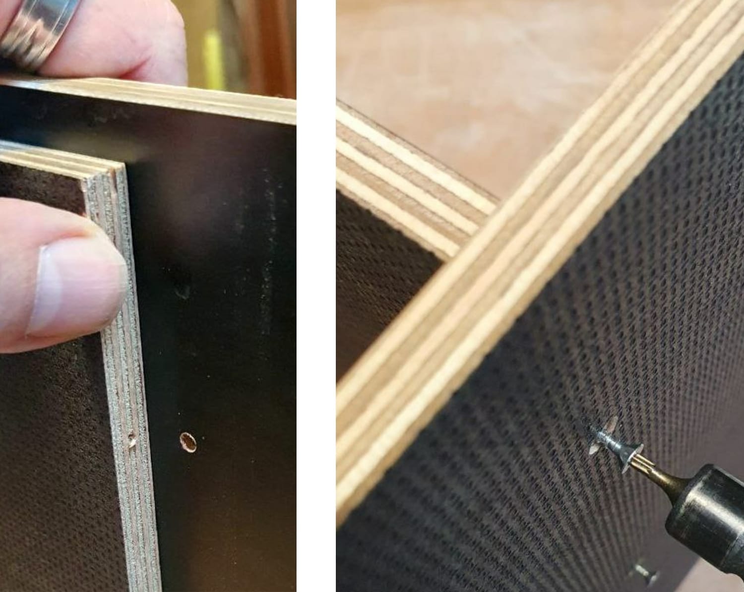 Platten prüfen, ob diese mit den Vorbohrungen übereinstimmen, denn oft werden seitenverkehrte Platten falsch verschraubt