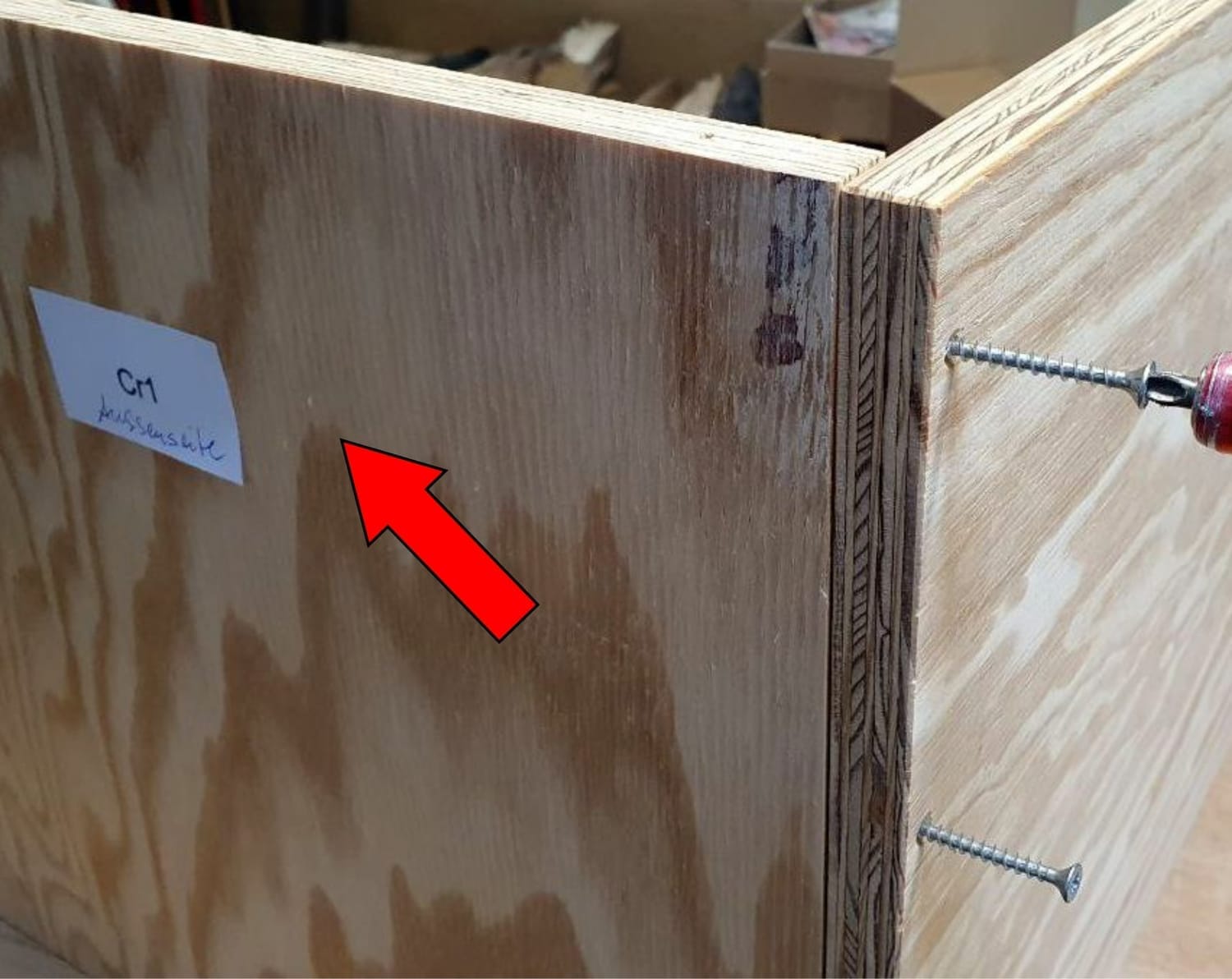 Die CR1 Platte ist beschriftet mit "Aussenseite", daruf achten, damit es keine Verwechslung gibt.